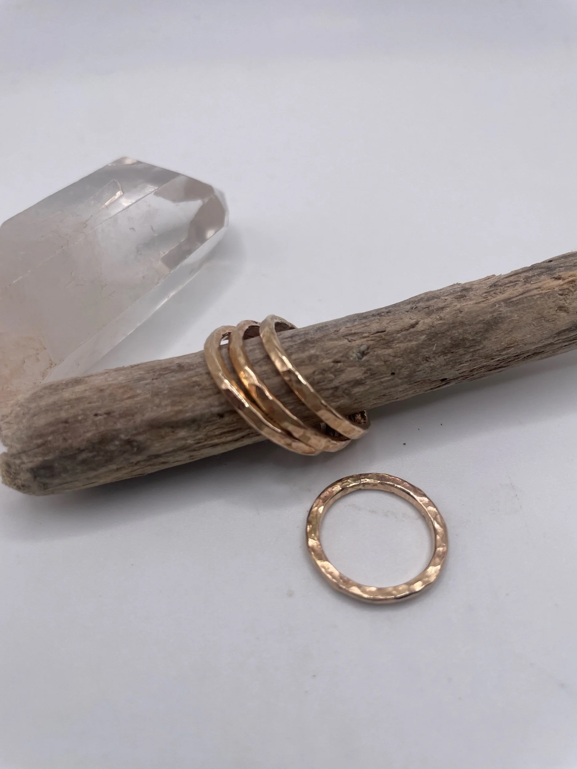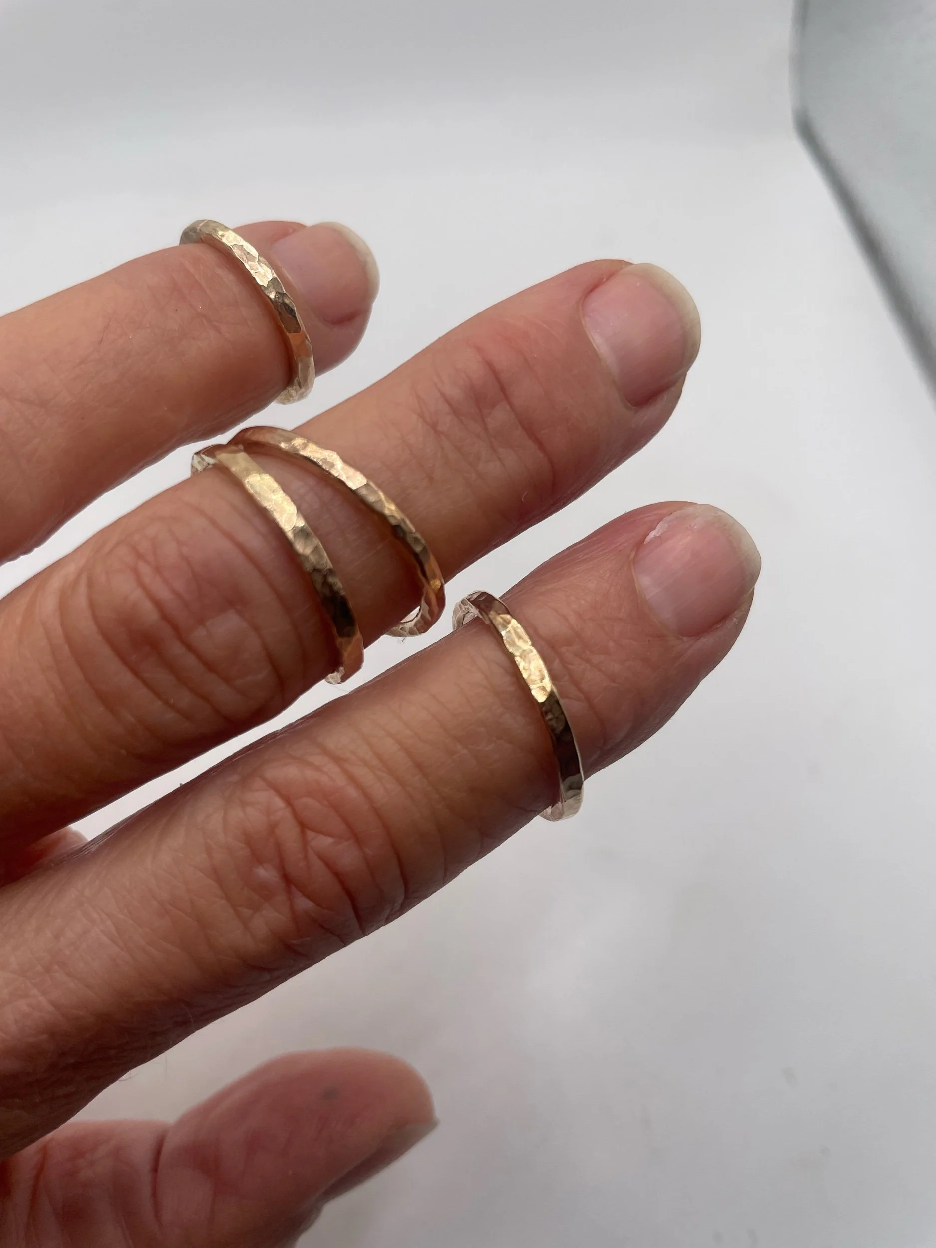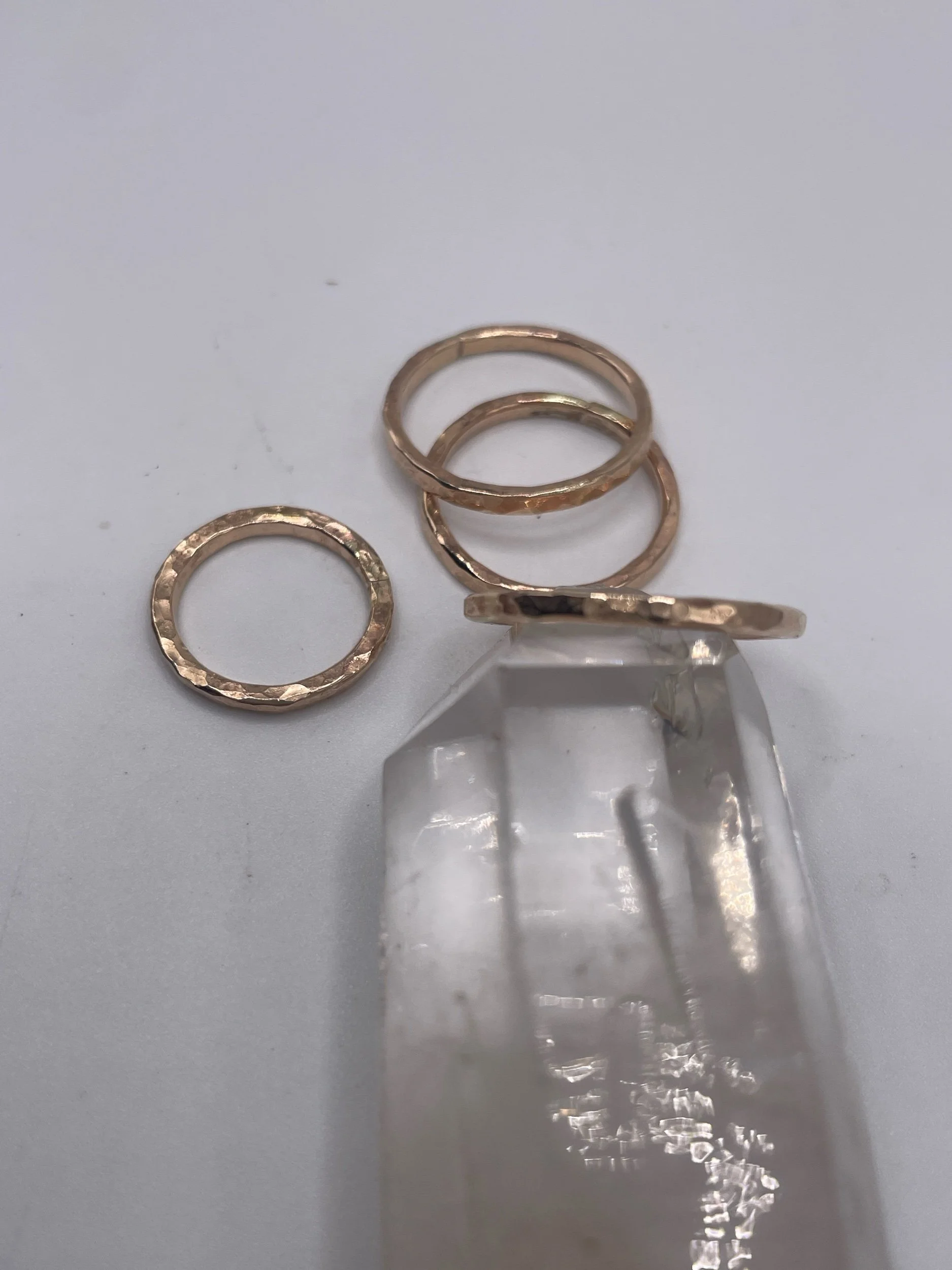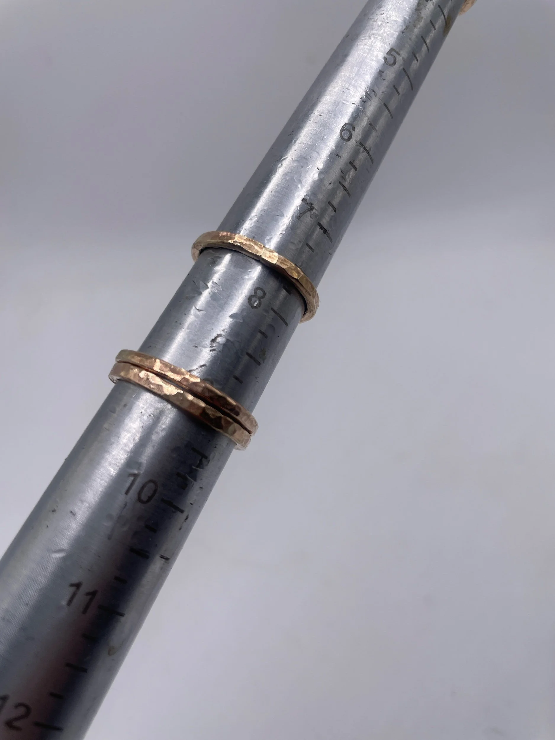 Store › Gold Ring- Stacker style Image 1 of 8 Image 2 of 8 Image 3 of 8 Image 4 of 8 Image 5 of 8 Image 6 of 8 Image 7 of 8 Image 8 of 8 Gold Ring- Stacker style $40.00 14 k gold fill band. 12 gauge hammered texture. State ring size when you order. Quantity: Add To Cart Added! 14 k gold fill band. 12 gauge hammered texture. State ring size when you order.