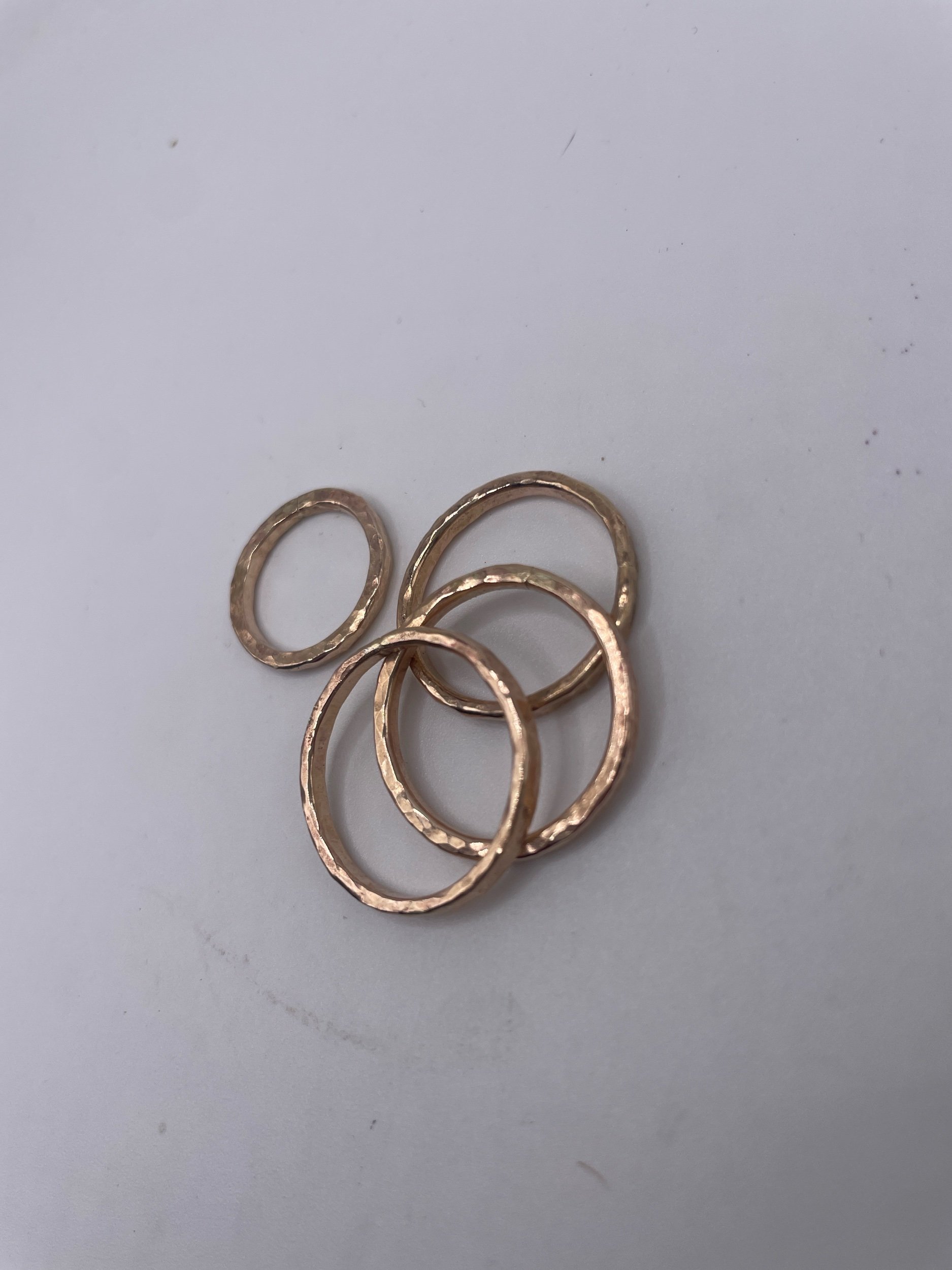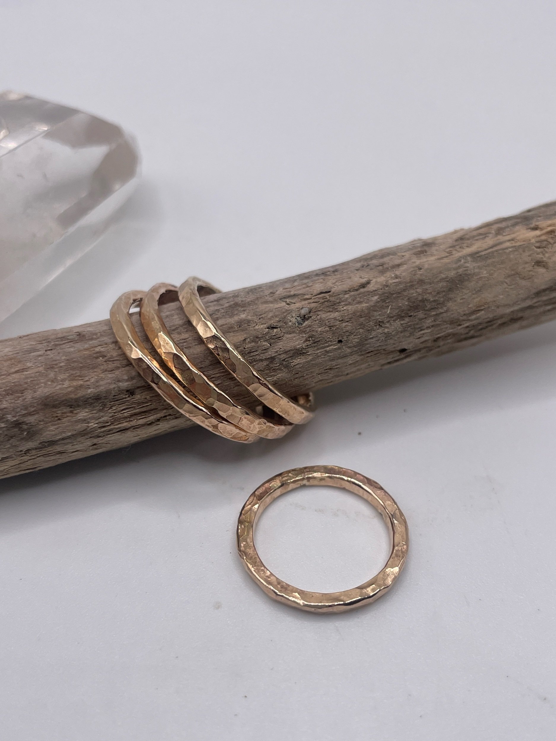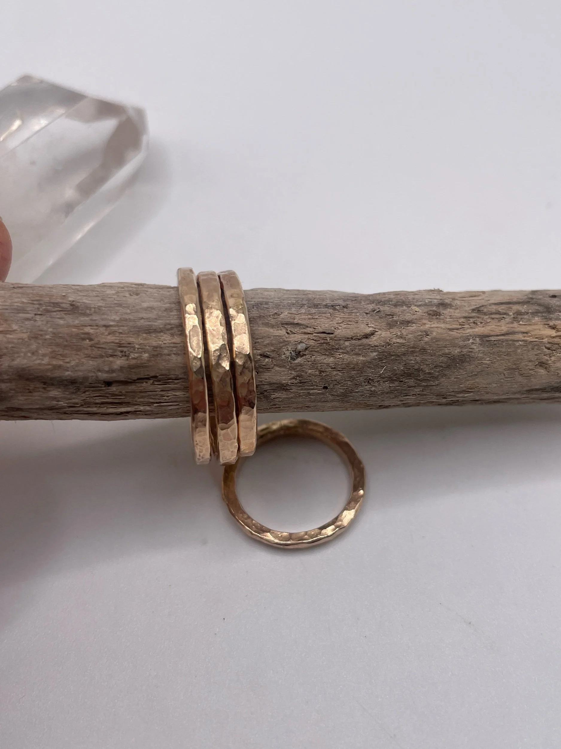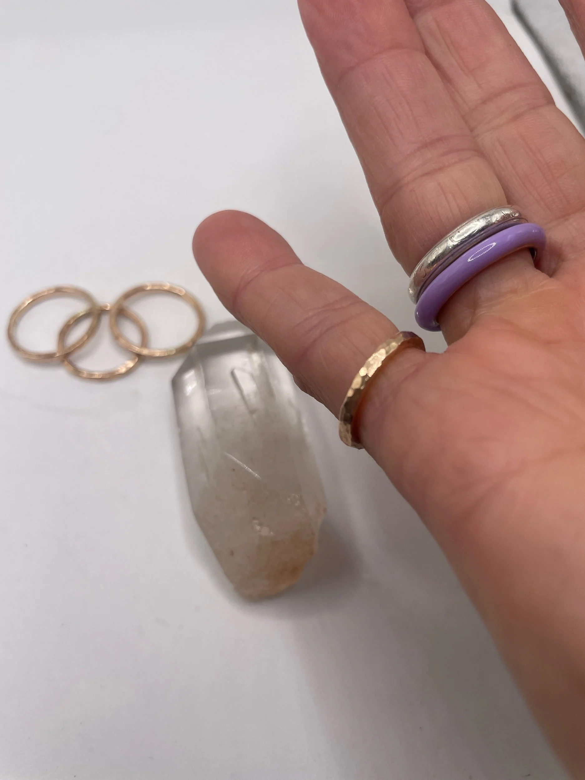 Store › Gold Ring- Stacker style Image 1 of 8 Image 2 of 8 Image 3 of 8 Image 4 of 8 Image 5 of 8 Image 6 of 8 Image 7 of 8 Image 8 of 8 Gold Ring- Stacker style $40.00 14 k gold fill band. 12 gauge hammered texture. State ring size when you order. Quantity: Add To Cart Added! 14 k gold fill band. 12 gauge hammered texture. State ring size when you order.