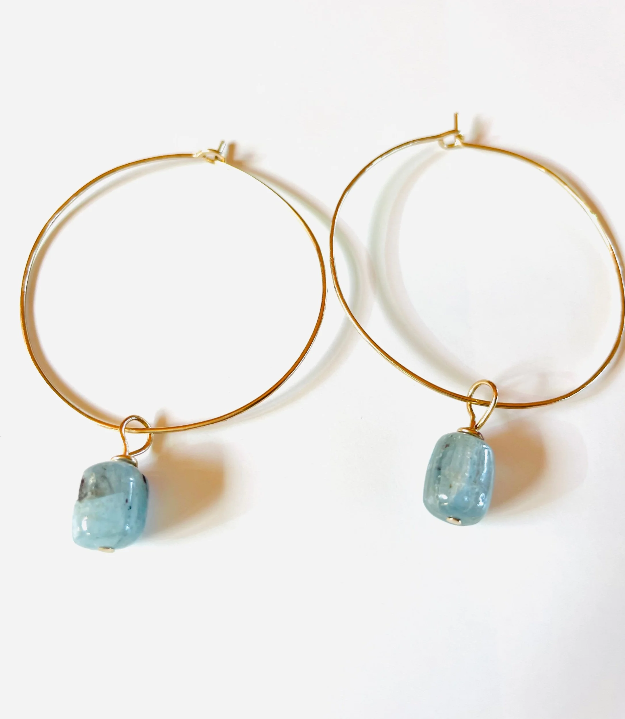 Store › Angelite & gold fill hoops Image 1 of 4 Image 2 of 4 Image 3 of 4 Image 4 of 4 Angelite & gold fill hoops $50.00 Angelite 7 mm bead hangs delicately from 18 gauge gold filled hoops diameter 2 inch Quantity: Add To Cart Added! Angelite 7 mm bead hangs delicately from 18 gauge gold filled hoops diameter 2 inch